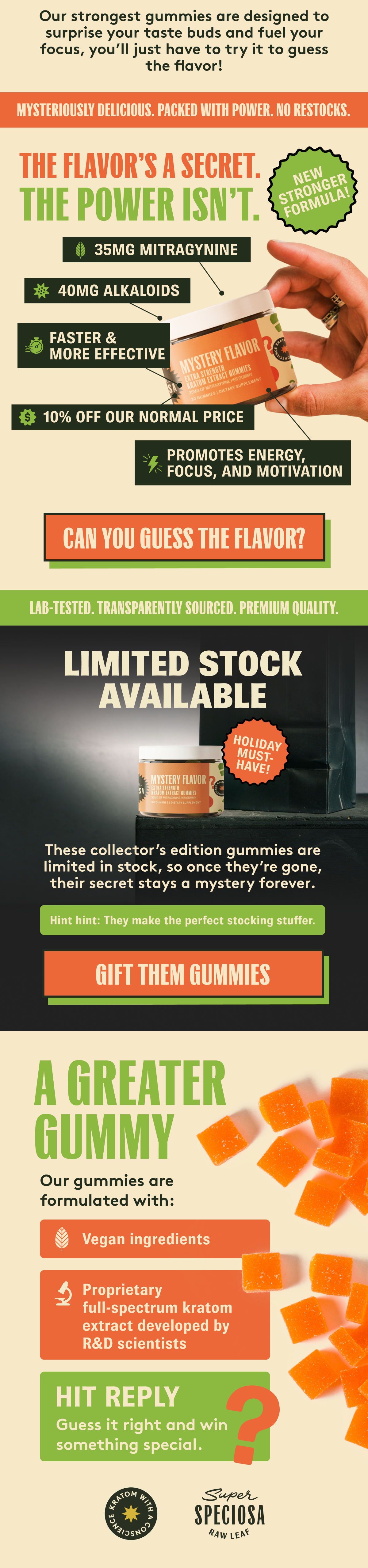 While Kratom has been widely used and valued by many, it is important to understand that our products are not intended to diagnose, treat, cure, or prevent any diseases or health conditions. The information shared in this email reflects the perspectives of its respective authors and should not be considered medical advice. We always encourage consulting with a healthcare professional if you have any questions about your wellness journey.